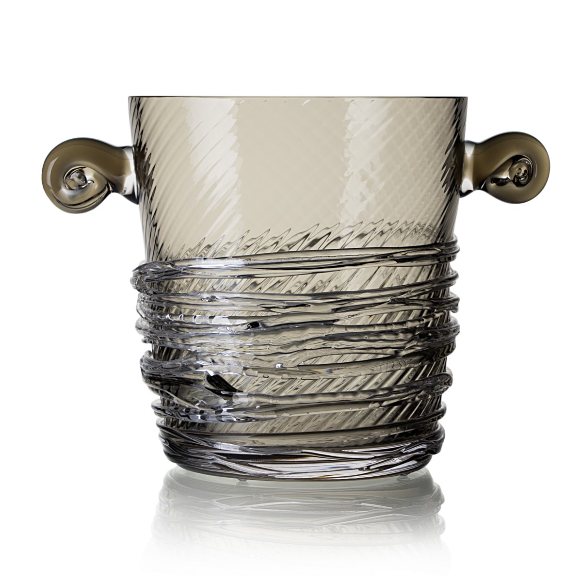 The glass collection was created by a metallurgical technique, where the individual glass fibers are wrapped around a vase, which are supposed to show a far-reaching view of the horizon.